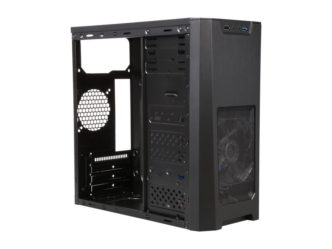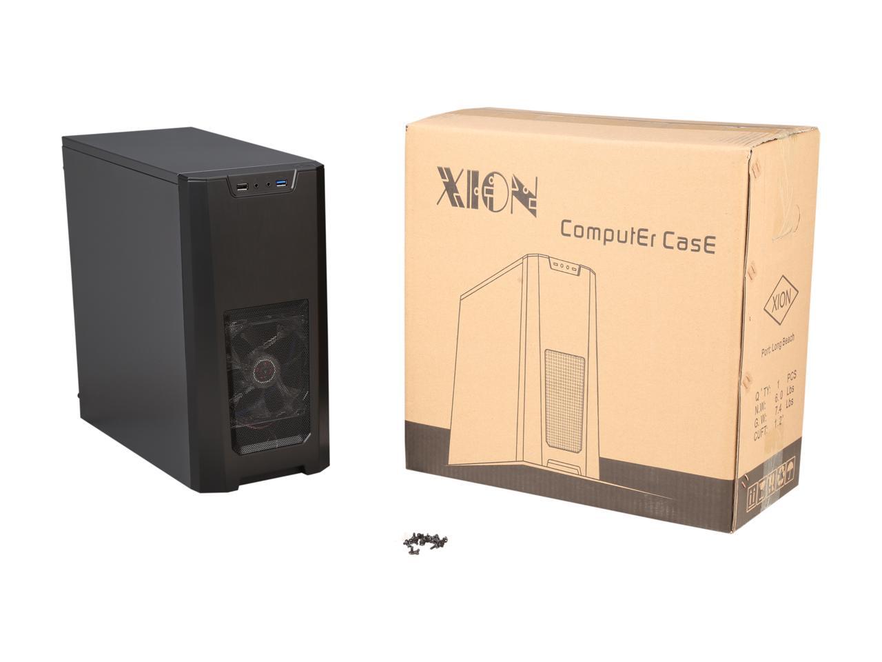 XION Gaming Series XON-310_BK Black with Blue LED Light Steel / Plastic Micro ATX Mid Tower Computer Case