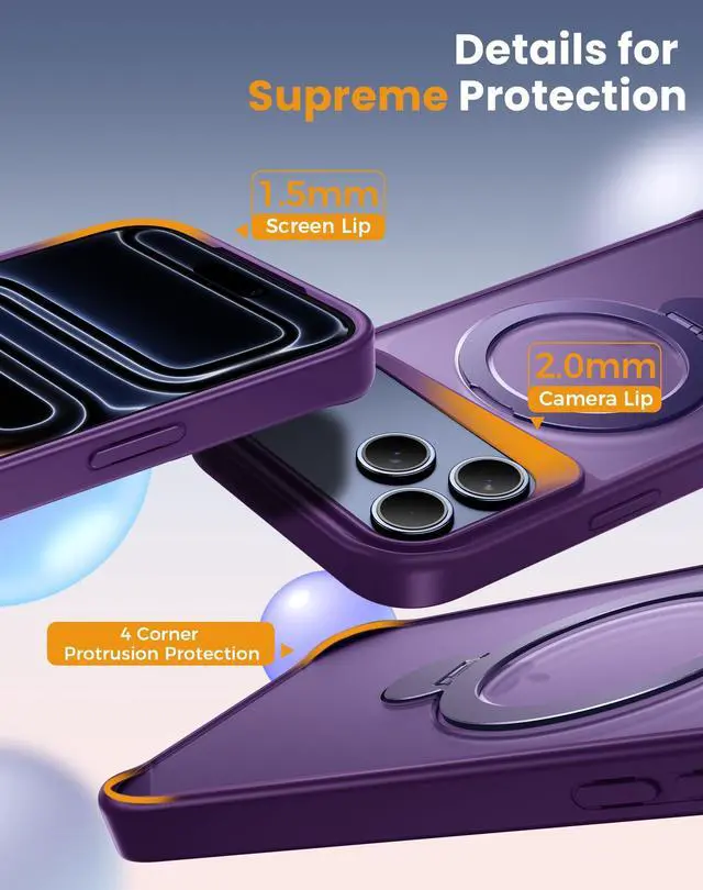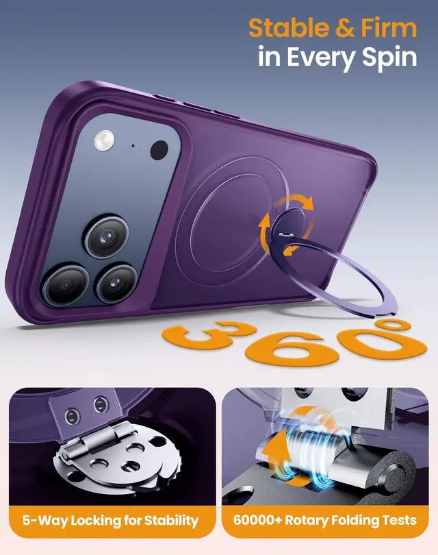 ![Alt view image 7 of 7 - Compatible with iPhone 17 Pro Max Case, with 360° Magnetic Stand [Compatible with MagSafe] [Military Drop Protection] Shockproof Translucent Matte Case for 17 Pro Max 6.9", Purple](https://c1.neweggimages.com/productimage/nb640/C5JMD2603050D8HLD2B.jpg)