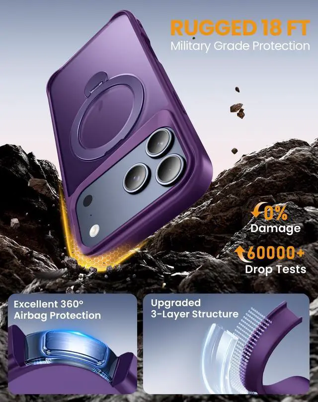 ![Main image of Compatible with iPhone 17 Pro Max Case, with 360° Magnetic Stand [Compatible with MagSafe] [Military Drop Protection] Shockproof Translucent Matte Case for 17 Pro Max 6.9", Purple](https://c1.neweggimages.com/productimage/nb640/C5JMD2603050D8EQMDD.jpg)