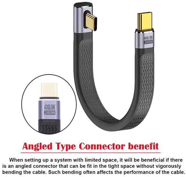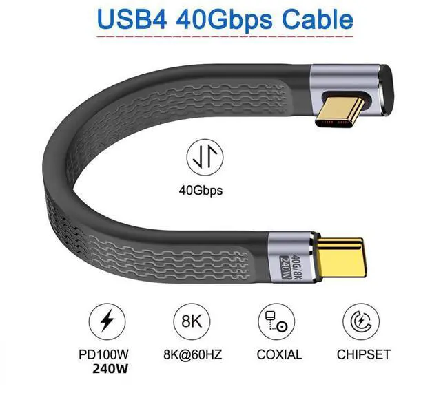 Low Profile Angled 240W Type-C USB-C Male to Male USB4 40Gbps 100W 8K Flat Slim FPC Data Cable for Laptop Phone 13cm