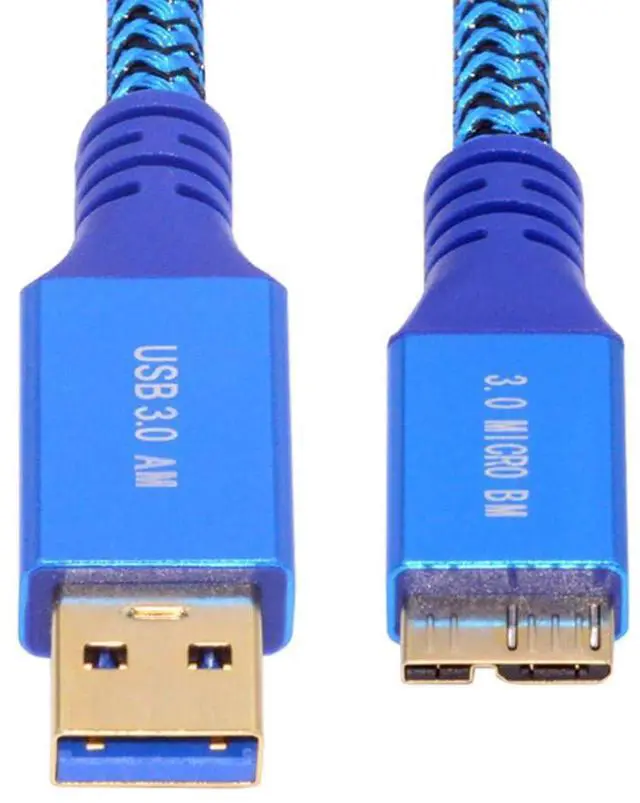 5Gbps USB 3.0 Type-A Male to USB3.0 Micro-B Male Extension Braided Cable Sleeve Blue for Disk SSD Camera Data 0.3m