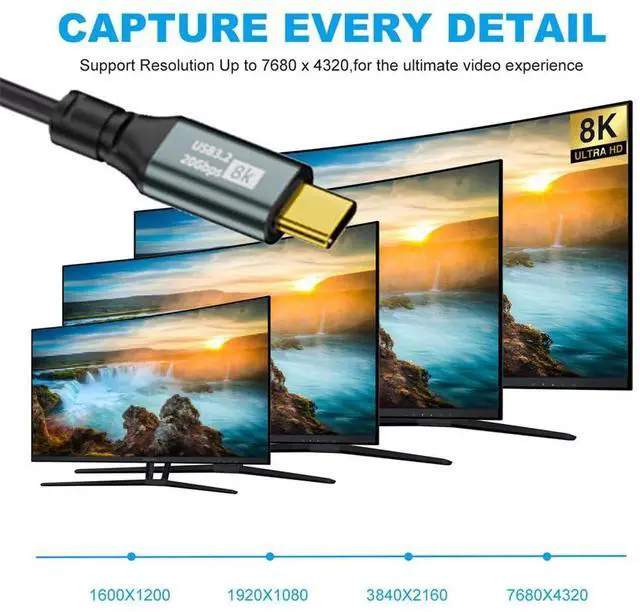 This USB4 Cable enables to connect from your USB4 or thunderbolt3/4 Port equipped Devices to your USB-C Monitors, It supports Single 8K@60hz, 5K@60Hz or 4K@60Hz max. video Resolution in your external displays.(please make sure your monitor's Type-c port support DP Alternate Mode for Video.)