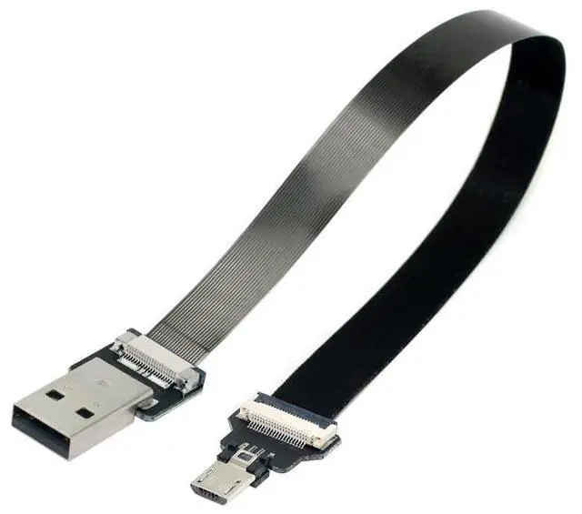 USB 2.0 Type-A Male to Micro USB 5Pin Male Data Flat Slim FPC Cable for FPV & Disk & Phone
