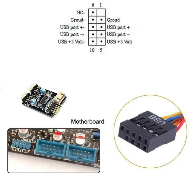 Motherboard 9pin USB 2.0 Header 1 to 2 Female Extension Cable HUB Connector Adapter Port Multilier
