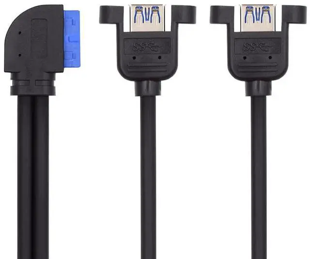 90 Degree Left Angled 19/20Pin Header to USB 3.0 5Gbps Dual Ports Female Screw Mount Type Cable Black 1ft