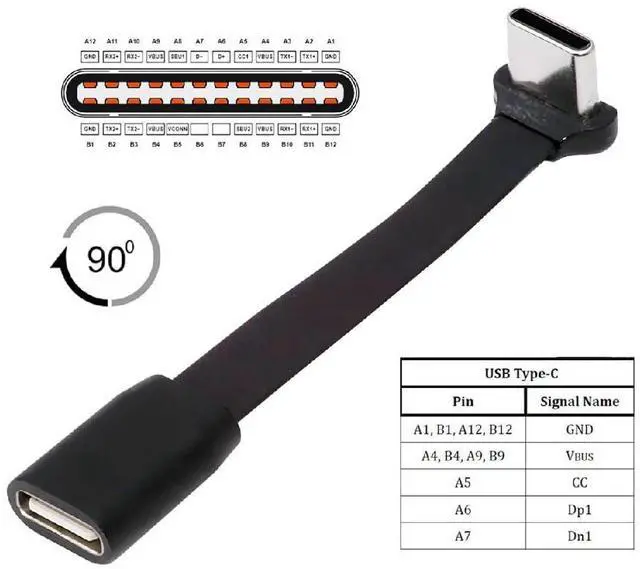 Ultra Slim Flat USB-C Type-C Male to Female Extension Power USB2.0 Data Cable 90 Degree Up Down Angled 65W Fast Charge for Laptop Tablet Phone