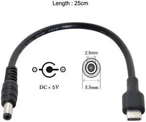 Xiwai Cable USB 3.1 Type C USB-C to 5V DC 5.5 2.5mm Power Plug Extension Charge Cable for Cell Phone 25cm