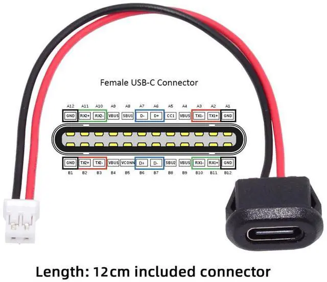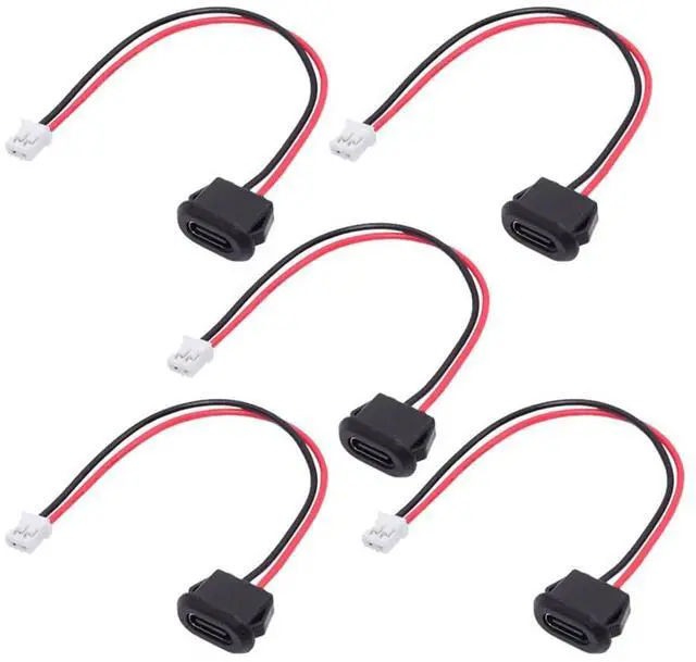 5pcs/set DIY OEM Type C Female Socket to 2Pin Header Cable Type-C to 2P Waterproof Terminal Wire with Pitch=2.0mm Latch Mount Type USB C Pigtail DC 5V Extension Power Cable