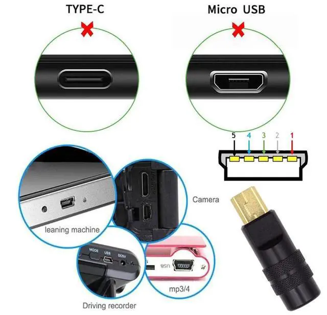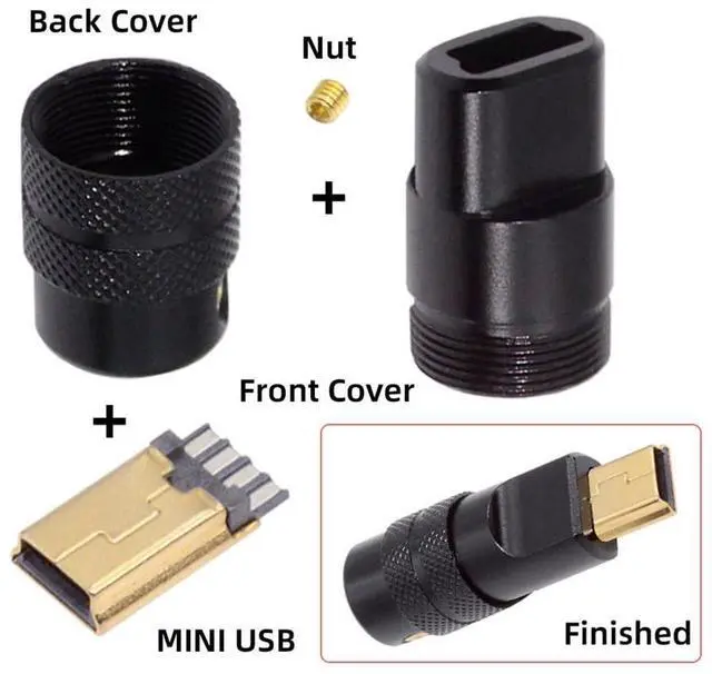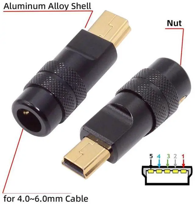 USB2.0 Plug Solder Connector Mini 5Pin Male Replacement Adapter with Aluminum Alloy Shell Black Customization for 4.0mm~6.0mm Cable