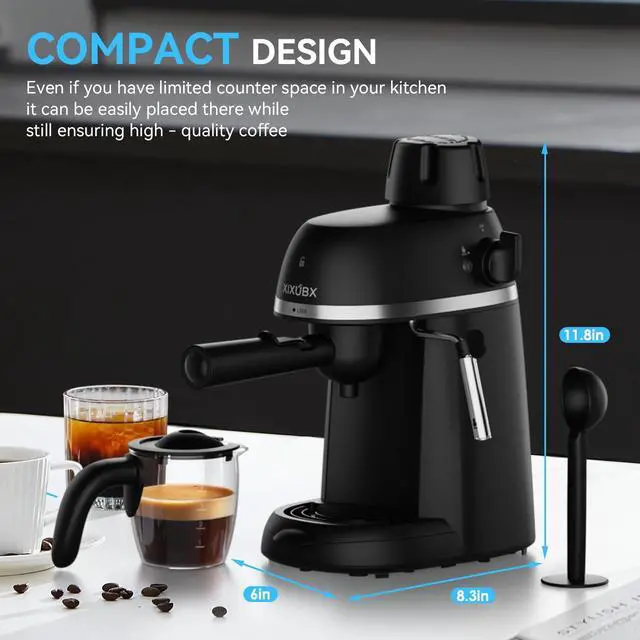How compact is this espresso machine? Will it fit in small kitchens or limited counter spaces?