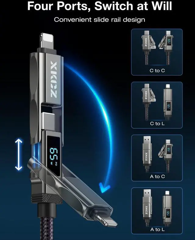 | Special Feature | 4 in 1 Versatile Cable, 65W Fast Charging, Anti-Tangle, Smart Live Wattage Display, TITAN Alloy Shell |