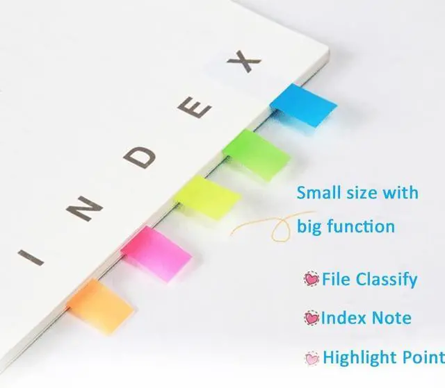 Sticky book annotation notes tabs unique extraction design,with portable base, easy to extract sticky notes flag.Matte and transparent without covering the words, can highlight important text and file content. It can also be used as an index to find tags.
