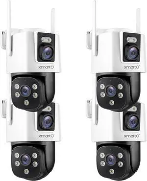 xmartO [WiFi 6 Dual-Lens Camera 2-in-1 HD WiFi Home Securirty Camera with AI Tracking, Pan Tilt Zoom, 5G/ 2.4G Dual Band, Bluetooth Easy Setup (Standalone CAM with LAN-Link, 4-Pack)