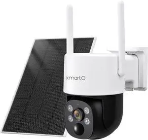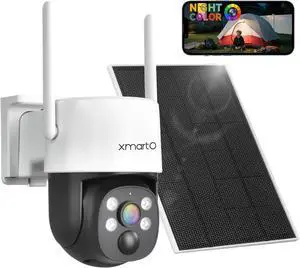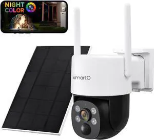 xmartO [Night Color QHD Solar Powered Wire-Free Home PTZ Security Camera Wireless Outdoor (Eternal Solar Power, Thermal Motion Detection, Spot Lights and Siren, Compatible with WiFi/Bluetooth)
