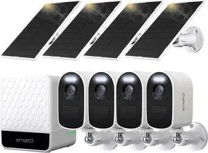 xmartO 4MP QHD WiFi6 Dual-Band Wireless Solar-Powered Indoor & Outdoor Home Security Camera System (Long Range WiFi, Free 64GB Loop Storage, No Monthly Fee, 4-CAM Kit)