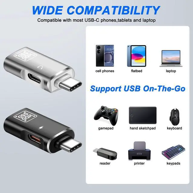 1PC * Black Type C to USB+Type C adapter 1PC * Silver Type C to USB+Type C adapter