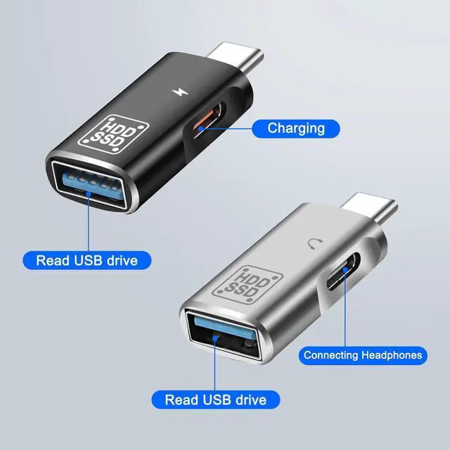 Type-C to USB3.0+C while reading USB OTG digital headphone converter, expanding USB-C port to USB A 3.0 port and USB-C port, connecting standard USB device HDD SSD