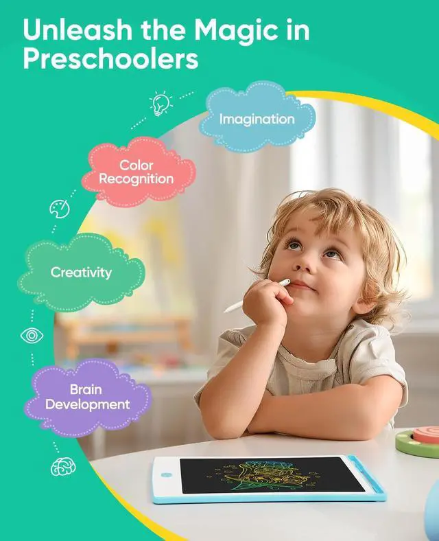 Eye Protection & Reusable Writing: The LCD writing pad has no harmful blue light, preventing dizziness or radiation exposure. The one-click erase function clears the screen, and it supports over 100,000 erasing and rewriting cycles, saving thousands of sheets of paper. No need for ink, keeping away the mess of crayons, markers, or chalk!