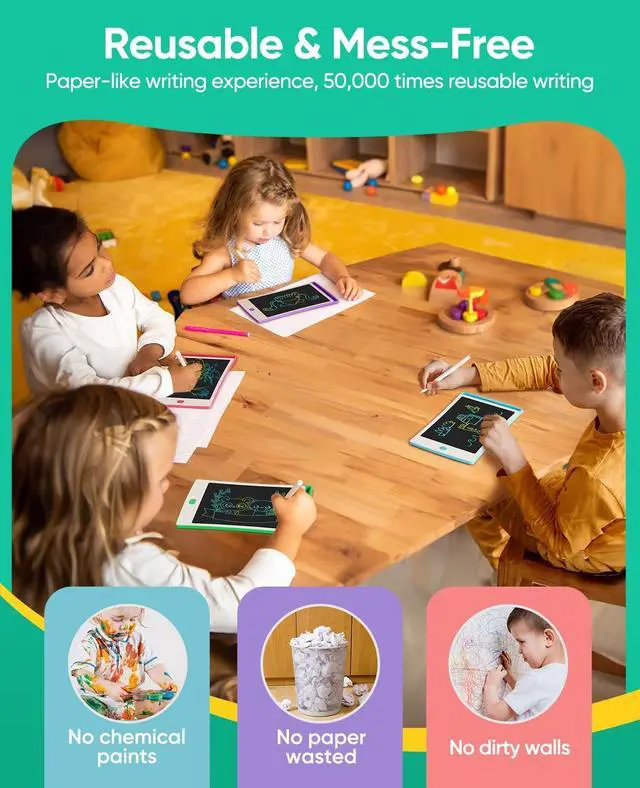 4-Pack Sharing Set: Designed for families with multiple children, the 8.5-inch kids LCD writing tablet set is perfect for sharing the joy of doodling among little ones!