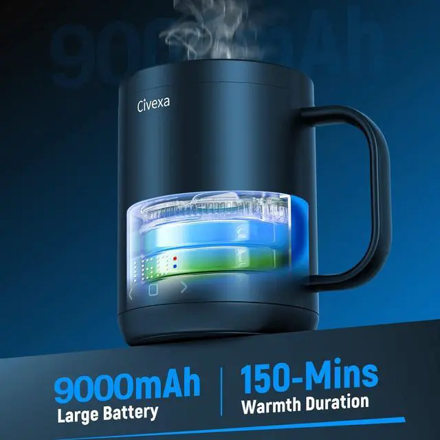 Equipped with a high-capacity 9000mAh battery, our heated mug provides up to 150 minutes of continuous warmth. When placed on the included coaster, it keeps your drink warm all day without any extra effort. Say goodbye to lukewarm coffee with consistent heating that lasts as long as your day.