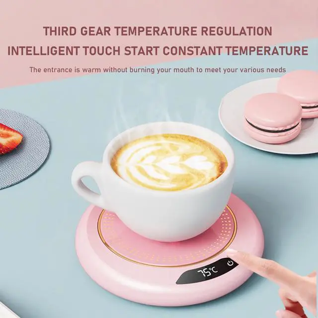 3-Temperature Settings Keep Coffee WarmOur mug warmer can slow down the cool speed of hot beverages; mainly keep water, milk, tea, and other beverages at the temperature for a long, you can enjoy your favorite drinks at the but not-too-hot temperature. You can choose the temperature by touching the "Temp Button" to keep or warm up the temperature of the drink to 55/65/75