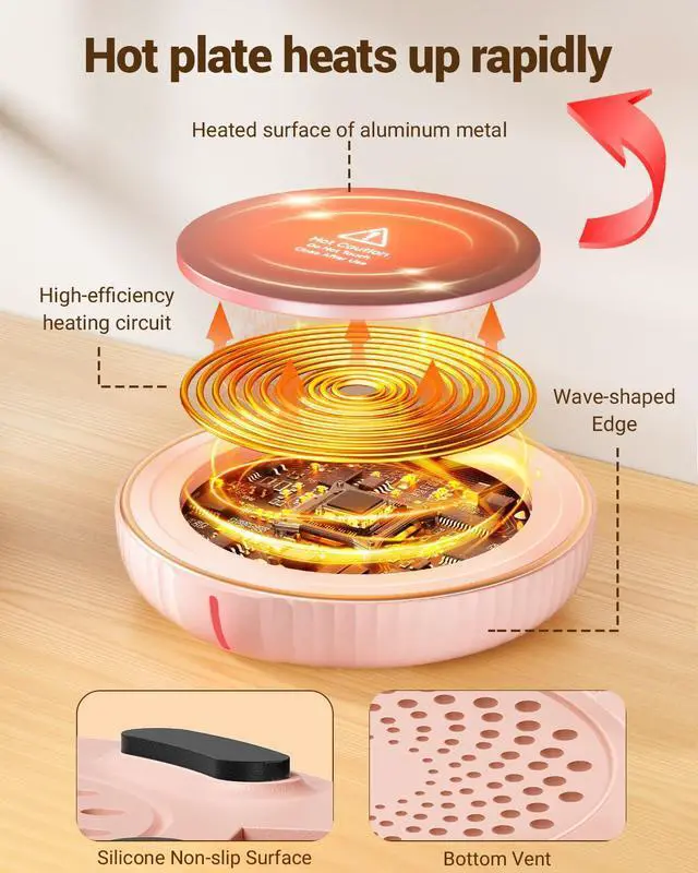 Safety Material Usage: Cup coffee warmer uses V0 flame-retardant material, LED light prevent accidental touches. Cup warmer for desk have a waterproof heating surface for easy cleaning, and maintains a stable temperature without overheating