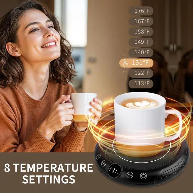 Updated 8-Temperature Settings: Most Versatile Coffee Warmer. 8 precise temperature settings from 113-176°F (45-80°C) keep your beverages consistently warmideal as perfect coffee gifts, valentine day for women gift. Long press the "+" and "-" buttons for 3s to easily switch between °F and °C. The unique / switch caters to all users.