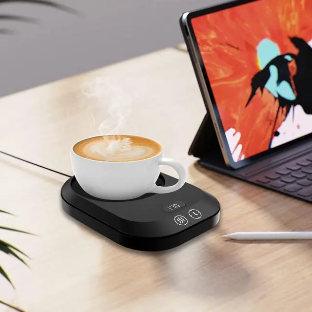 Coffee Cup Warmer with 3-Tem Settings -- The coffee mug warmer for desk keeps the coffee as hot as you want it to be. There are 3 temperature settings: 170/150/130. You can choose the temperature you want by touching the Power Button. With the cup warmer, keeping the drinks warm/hot is no problem.