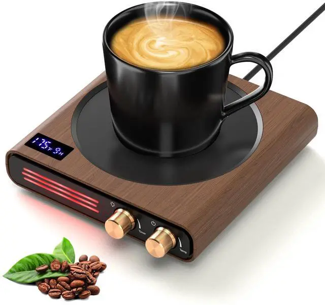 • 1-9H Timer and Memory Function: Rotate the "Timer/Light Control Knob" to select the auto-off time, ranging from 1 to 9 hours. If you don't set a timer, the electric mug warmer will default to shutting off automatically after 4 hours. The coffee warmer for desk has memory function(all settings need to be retained for more than 10 seconds), it will remember all your settings, so you don't need to reset them when you use it next time