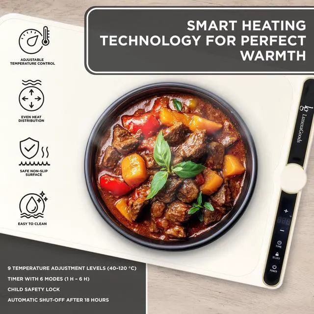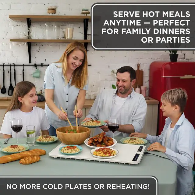 Rapid Heating & Even Warmth: Advanced heating system covers the entire surface for fast, balanced heat distribution. Keeps multiple dishes warm at the same time without uneven hot spots.