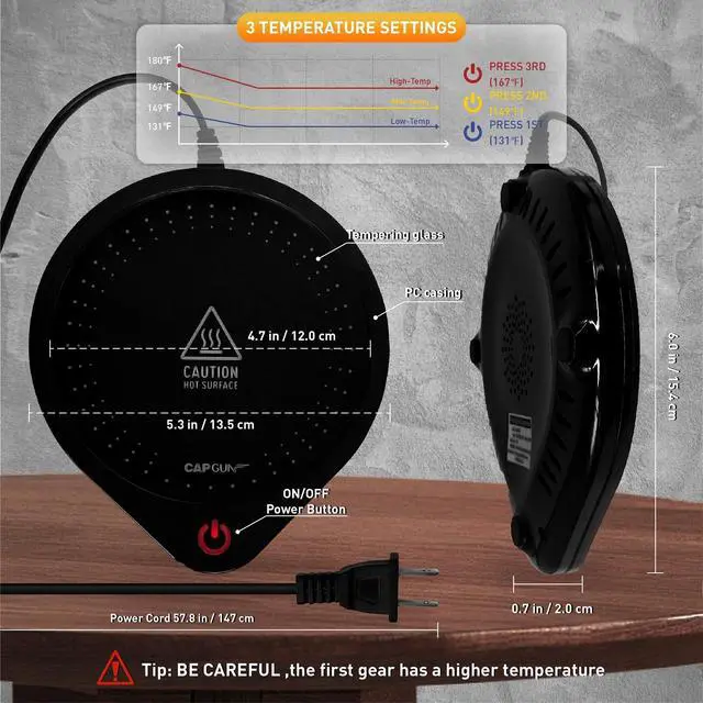 Easy to UseThe coaster just needs to press the switch to turn on the insulation system, which is very convenient, and you can enjoy hot tea/coffee/milk at any time in the office.