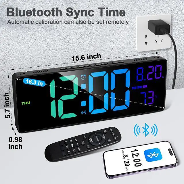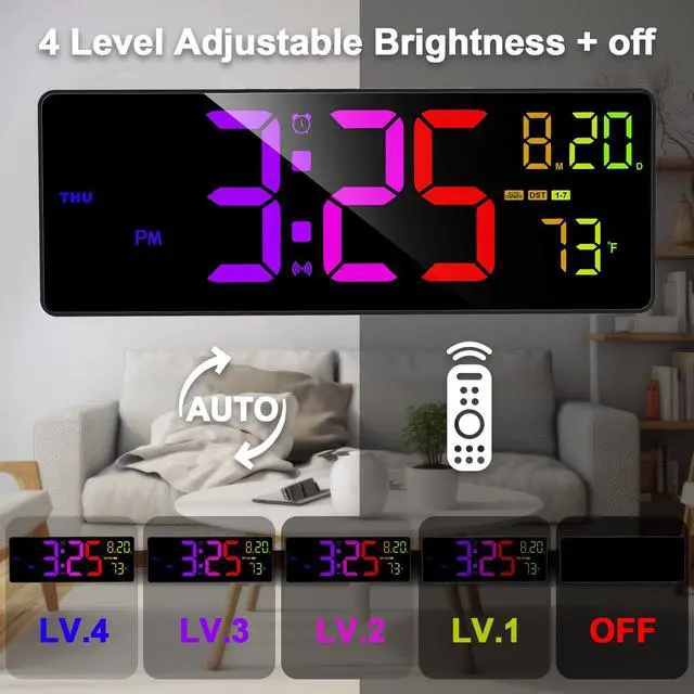 The screen brightness of large digital wall clock can be adjusted by 4 levels of brightness, and nightlight can adjust not only the color of light source but also the brightness of 5 levels, which can help you adapt to various environments.