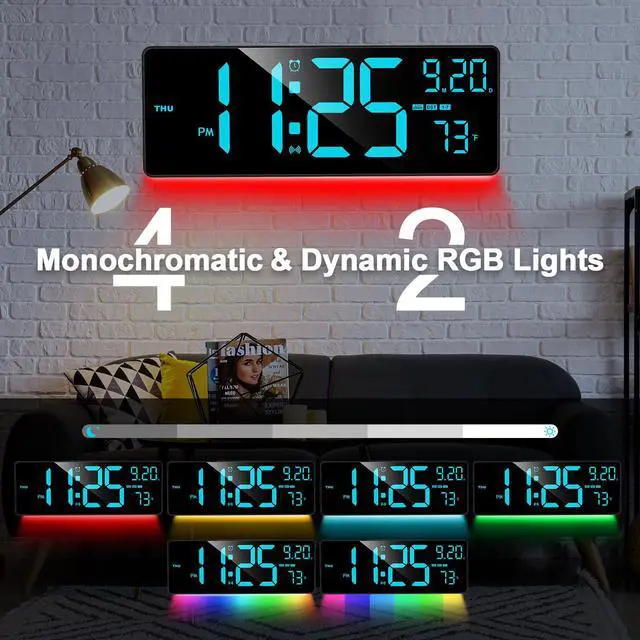 The screen color of REXS digital wall clock can be switched at will, and 4 dynamic multicolor modes and 6 monochrome modes can be adjusted at will.