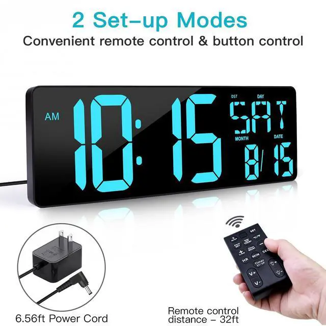 REXS 16.5" Large Digital Wall Clock with Remote Control