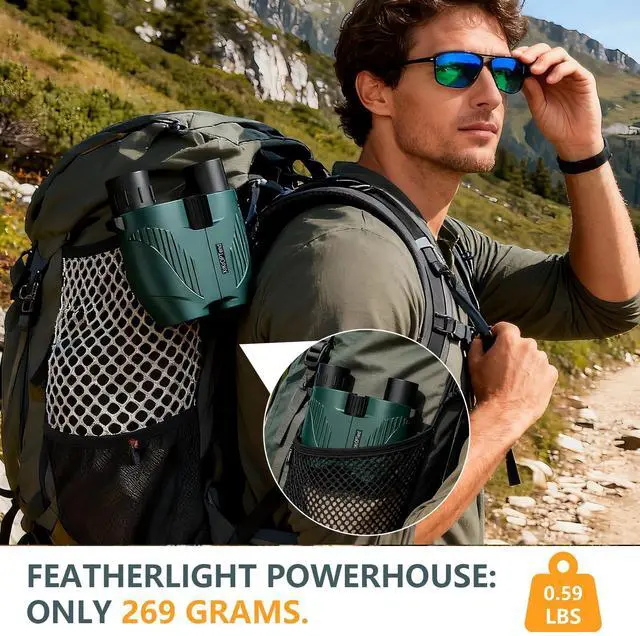 Extremely compact and mini-low weight; easily fits in a pocket or bag. Perfect for travel, cruises, and concerts. Simple, quick-focus design is ideal for both adults and children (8-12 yrs) as a versatile, easy-to-use gift.