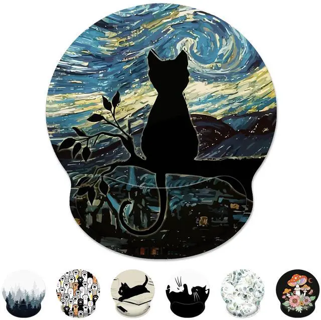 Ergonomic Mouse Pad with Wrist Support,Aesthetic Black Cat Mouse Pad with Wrist Rest,Relieve Wrist Pain Mousepad Non-Slip Rubber Base,Cute Mouse Pads for Desk,Computers,Laptop,Office,Accessories