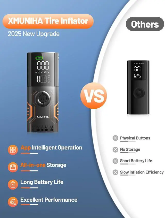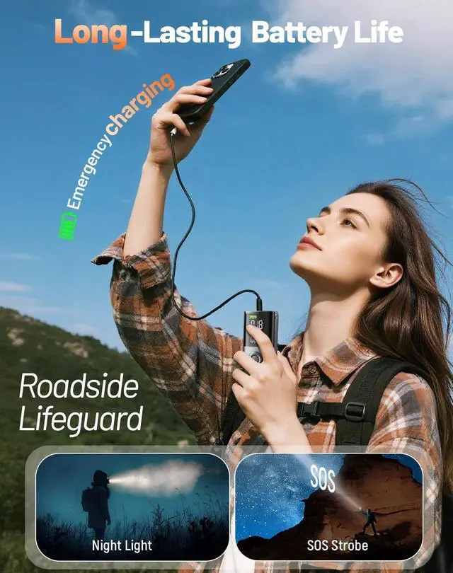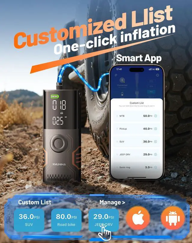 This portable tire pump is app-controlled, allowing you to easily set your ideal tire pressure. It automatically shuts off after inflation, giving you peace of mind. It also features four inflation modes and customizable modes, perfect for a variety of scenarios, including cars, motorcycles, bicycles, and even ball sports. Its unique emergency lighting and strobe lighting modes make it convenient for nighttime use