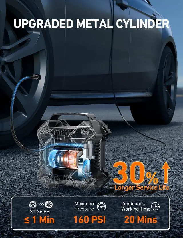 | Integrated Metal Structure;LED | Portable;Digital; Auto Shutoff | Storage Function Design | Metal Structure;Digital;12LEDs | Portable; Dual Values Display | Inflation with 7.06 CFM | 1.97CFM inflation, Portable |
