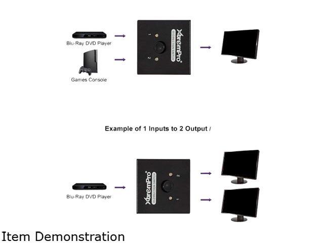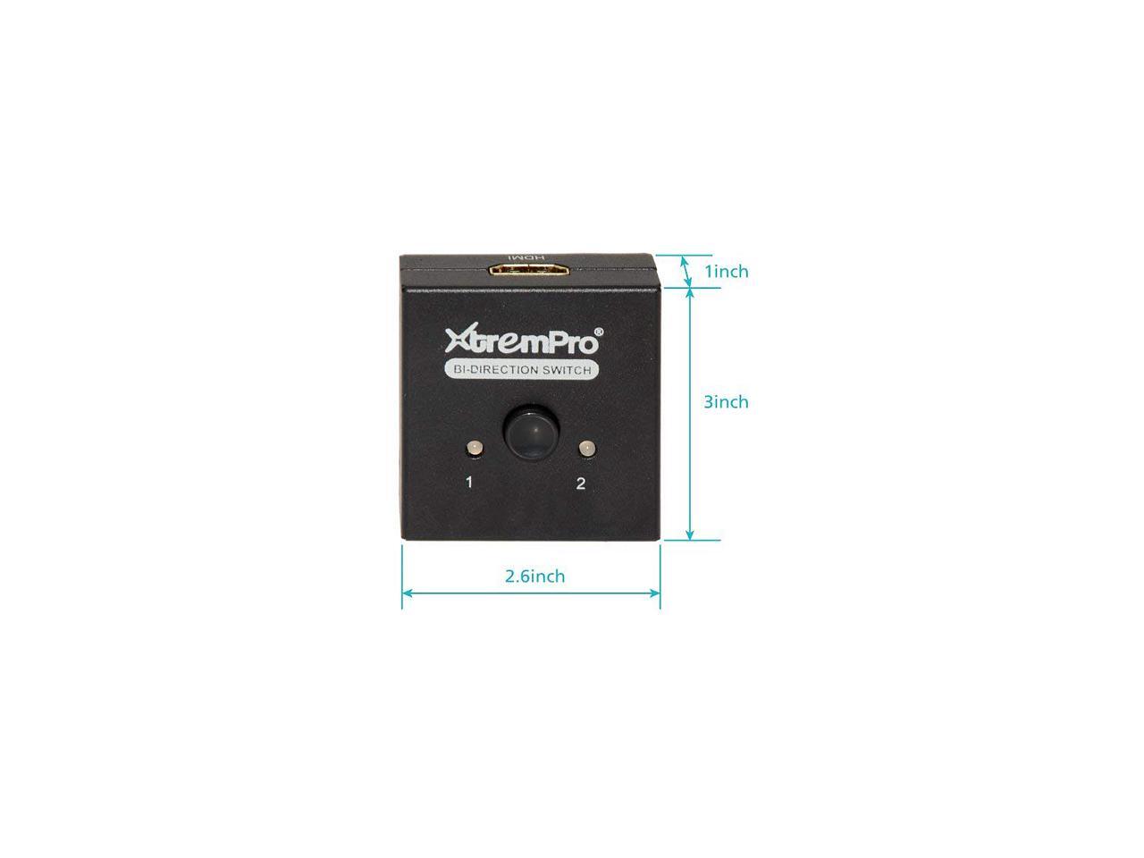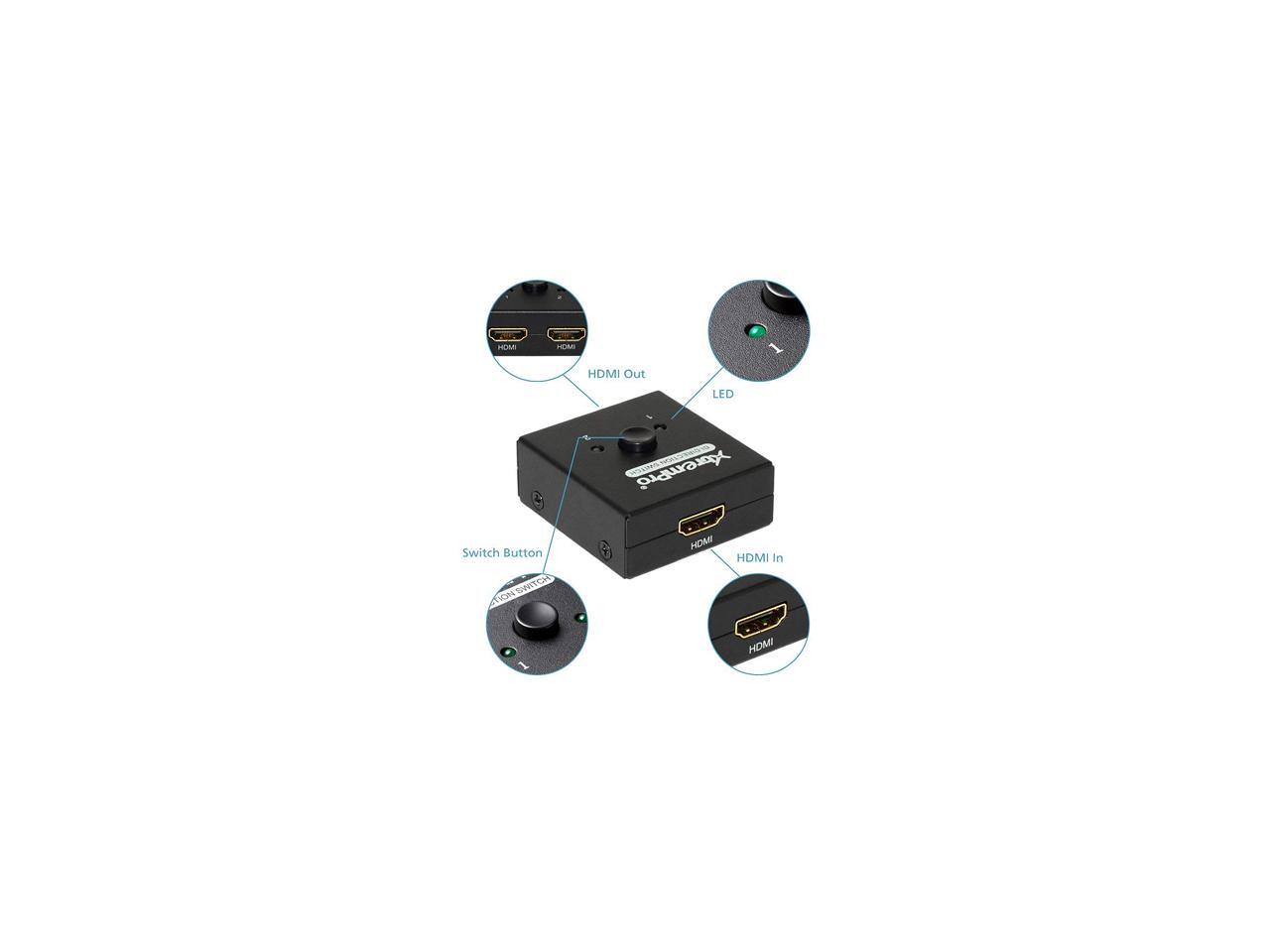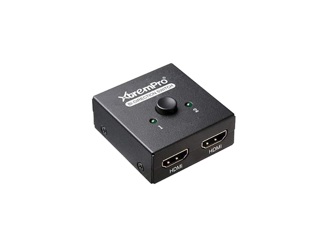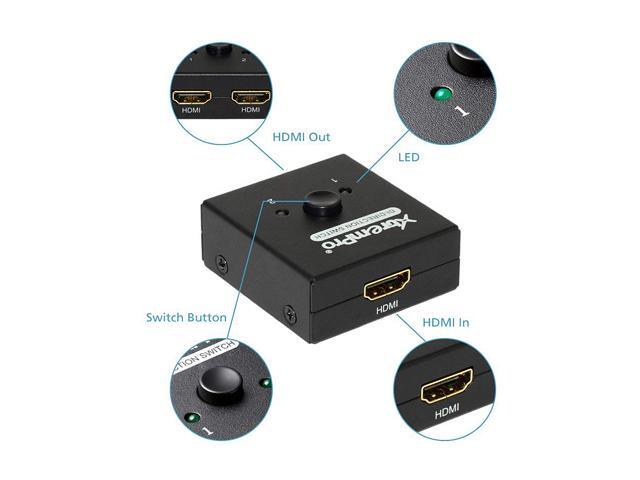 XtremPro 61032 4K HDMI 4K 2 Ports Bi-Direction Switch, 2 x 1 / 1 x 2 Hub-HDCP Passthrough, Supports Ultra HD 4K, 3D, 1080P, 1080i, 720p, No power Source need - Black