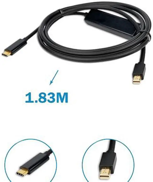 | Specifications | This is a USB-C male to Mini DisplayPort Male adapter with 6ft / 1.83M cable which allows you to transmit signals from your new MacBook or Chromebook to a Mini DisplayPort display (MacOOKPro? MacBook Air). Besides, there is no need for you to connect the source display to the sink display with an HDMI cable as it is equipped with 1.83m cable.With this product, you can watch videos or slideshows together on the big screen. |