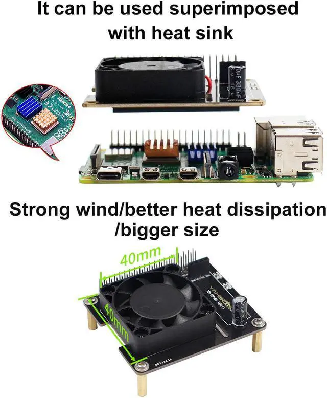 The speed of the cooling fan can be changed according to the temperature of the raspberry PI through code programming, which can better ensure that your Raspberry Pi is running at a safe temperature.No wiringNo waste of IO portIt also expand Raspberry Pi 40pin header and can be used to connect to other devices.