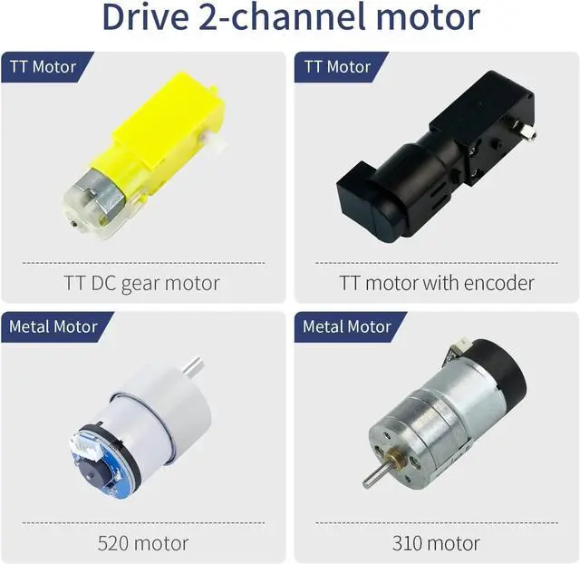 Wide range of applications: the motor speed controller can be controlled by 5V/3A or 3.3V/0.5A microcontrollers such as Raspberry Pi, Pico, arduino, jetson nano, STM32, etc. The controllable motors include TT motors, encoder test TT motors, 520 motors, and 310 motors and other motors. The motor can be connected with DuPont line or PH2.0 interface.