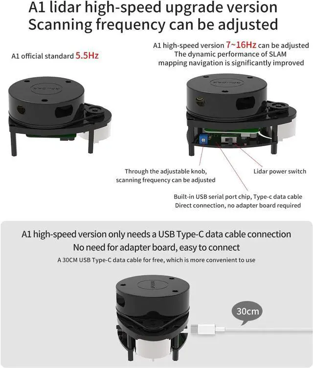 Choose Version ? Use this lidar indoors or outdoors? Triangular ranging or TOF ranging? The measurement frequency is from 8000 times/s to 32000 times/s, and the scanning frequency is from 10Hz to 20Hz. According to your specific needs, select the corresponding lidar