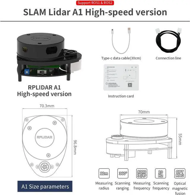 Safe Laser Standards ? The ranging core of the RPLIDAR radar rotates clockwise to achieve a 360-degree omni-directional scanning and ranging detection of the surrounding environment, which can obtain a contour map of the surrounding environment.We use a low-power infrared laser as the emitting light source, which meets the safety standards of Class 1 lasers and reaches the level of human eye safety.