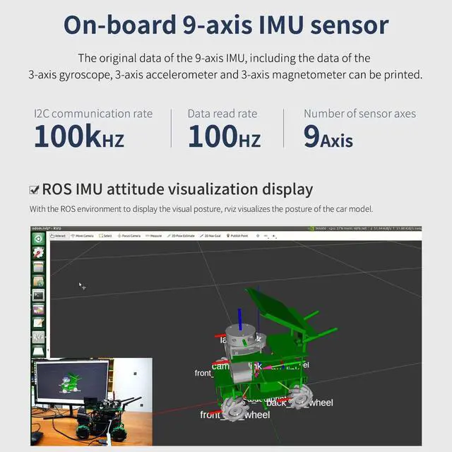 Multi-functional robot expansion board: The control board is equipped with a 9-axis IMU attitude sensor, which can obtain real-time posture information of the robot and is widely used in ROS robot kit development.