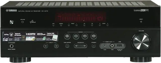 Exceptional Audio PerformanceFeaturing 5-channel powerful surround sound with discrete amp configuration and 192 kHz/24-bit Burr Brown DACs for all channels, the RX-V473 delivers high dynamic, powerful output capability to bring you cinema-like audio experience just in the comfort of your home. The Direct Mode makes for high quality sound reproduction while the low jitter PLL circuitry helps optimize sound imaging. The HD Audio format decoding for Dolby TrueHD, DTS-HD Master Audio, Dolby Digital Plus and DTS-HD High Resolution Audio refreshes your listening experience with tantalizing high-definition audio that is as stunning as the high-definition pictures. (DTS-HD featured products have the ability to decode all streams required for DTS-HD Master Audio but may have limitations in channel output and/or sampling frequency; or may utilize unique post processing.)