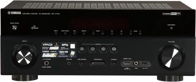 A USB port on the front panel allows convenient connection of an iPod/iPhone/iPad, which also charges when connected. Because the digital signal from the iPod/iPhone/iPad is transmitted directly to the AV receiver, there is no signal loss or interference, so you enjoy the best possible sound quality. In addition, you can use the receiver’s remote control unit to operate the iPod/iPhone/iPad music playback functions. Advanced Multi-language GUI On-screen DisplayYamaha’s latest graphical user interface has a high resolution display with clear, easy-to-use menus and also includes a selectable status bar that shows input source, volume level, DSP mode and audio format. The GUI provides a choice of eight languages: English, French, German, Spanish, Italian, Russian, Japanese and Chinese, and can be displayed over both normal and 3D pictures.