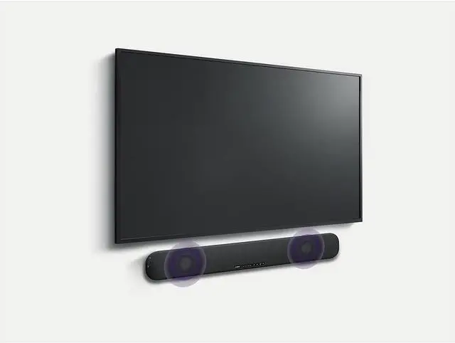 Dual built-in subwoofers combined with dual bass reflex ports provide a rich and spacious bass range. Two woofers and two tweeters create sound detail and dimension for all your TV content.