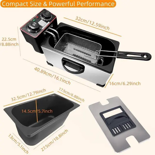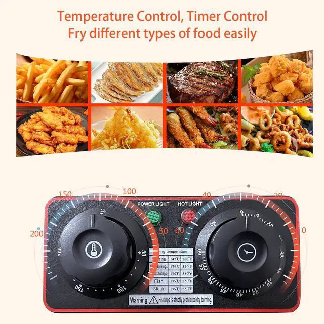 The basket is ideal for small to medium ingredients (like chicken legs). For larger items, you don’t need to use the basket at all! Our fryer is equipped with a built-in baffle plate that separates food from the heating element. This design safely prevents direct contact while allowing large foods to cook evenly in the oil.