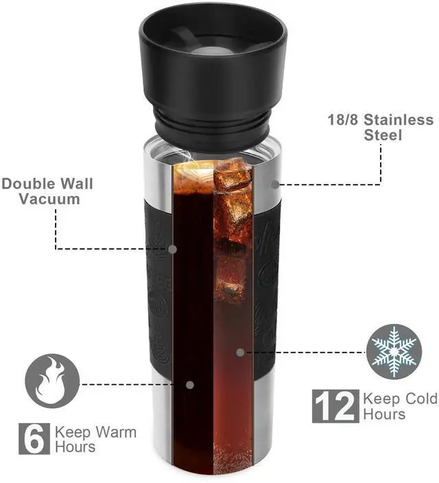 A screw-on mug lid design ensures our thermal coffee mug Leak Proof & Spill proof.